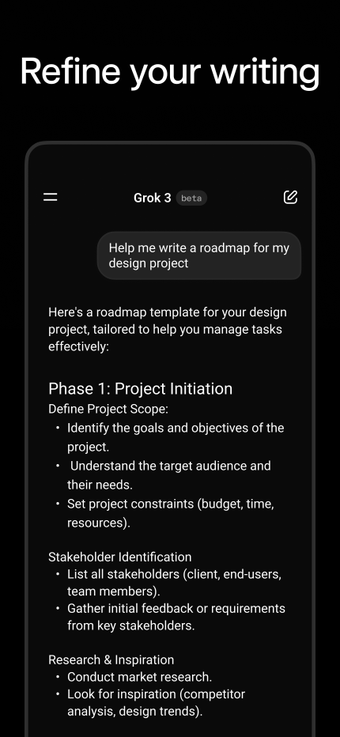 그록은 진실하고 유용하며 호기심 많은 응답을 제공하는 데 중점을 둔 안드로이드에서 사용할 수 있는 무료 AI 기반 도우미입니다. 사용자가 질문을 하고 정확한 답변을 받을 수 있게 하여 개인적 및 전문적 맥락에서 생산성을 향상시키는 데 유용한 도구입니다. 그록의 두드러진 기능 중 하나는 인상적인 이미지를 생성할 수 있는 능력으로, 이는 시각적 학습자나 창의적인 분야에 있는 사람들에게 특히 유용할 수 있습니다.